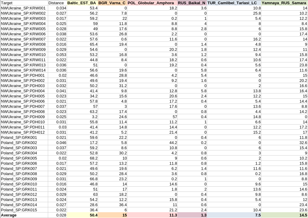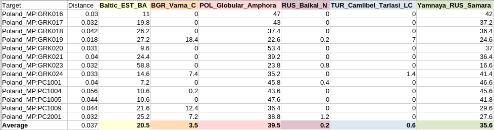 As the recent study about Slavic expansion showed, even as late as the Middle Ages in areas with relatively similar populations it’s possible to detect migrations. I’ve seen that at Eurogenes they got those samples, so I run a distal model for both the Migration Period samples from Poland and the Slavic Period ones (which includes NW Ukraine samples too) and the difference is quite clear, with the latter being clearly more Baltic, but also having a clear signal from the Balkans (with its Anatolian part going along) and hints of Scythian (from the small Baikal_N signal):
